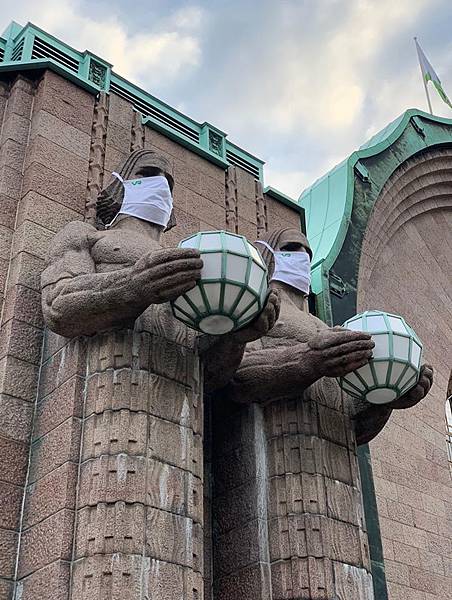 如果你們有來過芬蘭,應該對這個赫爾辛基中央車站的提燈籠人雕像不陌生。前一陣子芬蘭政府建議大家在大眾運輸工具上戴口罩,婆婆她們坐火車來時也說車上約有快要一半的人戴上了口罩。