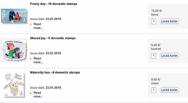芬蘭郵局1/23開始要推出2019年的新郵票啦!