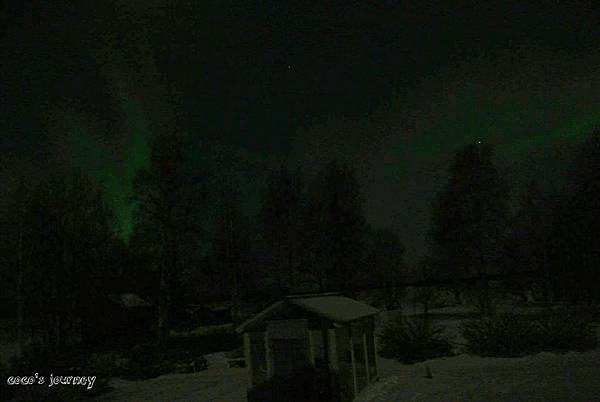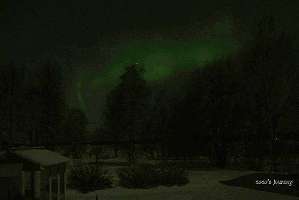 然後剛剛洗完澡出來打開電腦,發現臉書上說Rovaniemi剛剛有極光出現,打開房間窗簾一看!果然有!!