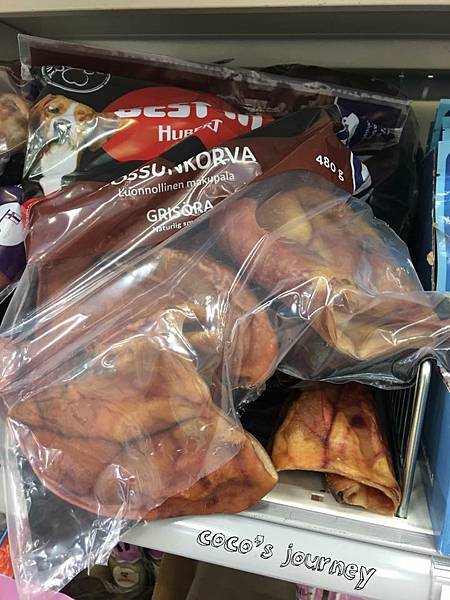 然後我就真的在超市裡看到豬耳朵了,好羨慕芬蘭狗狗啊!