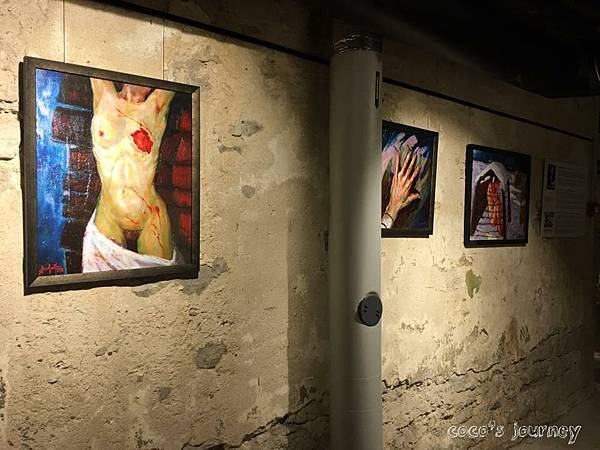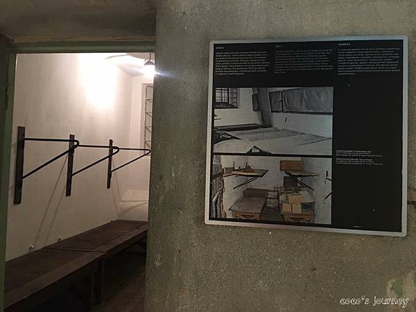 我八字不算輕,但不曉得是不是因為位置比較低的關係,一進去博物館就覺得胸口被什麼給壓住了,無法好好的、大口的呼吸。老公說,以前的人在牢房裡因為空氣不好,加上沒有光線,每個人的呼吸都會減少牢房裡的氧氣、增加濕度,加上沒有廁所,吃喝拉撒睡都在同一個空間裡解決,所以牢房裡總是濕答答的。