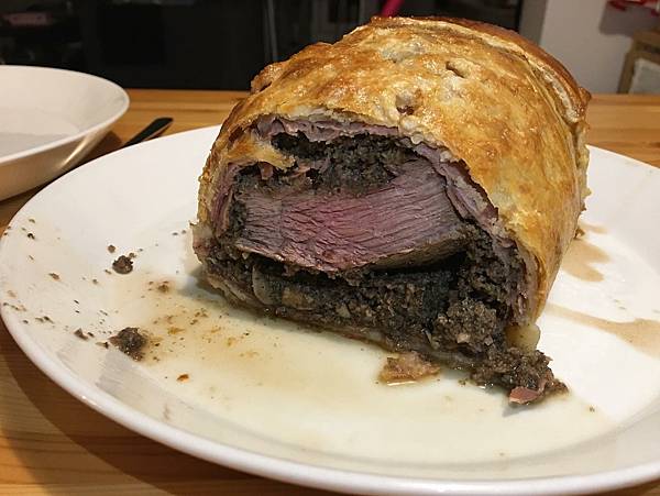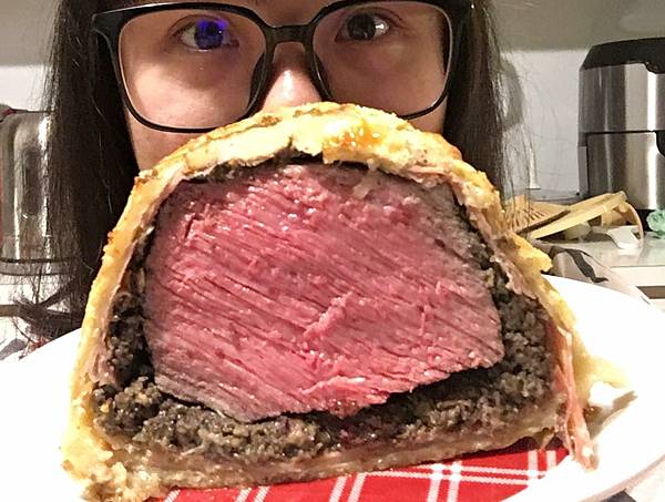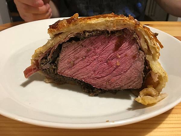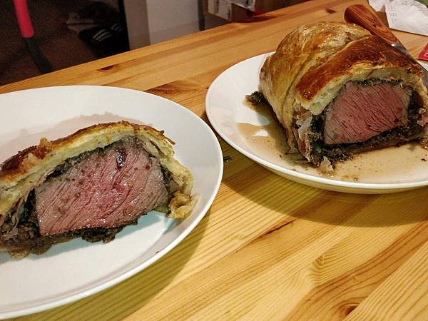 然後就在剛剛,我們夫妻倆真的把威靈頓牛排變出來了!媽媽咪呀!兩個人一起做都覺得搞剛...