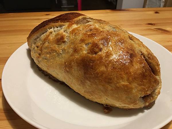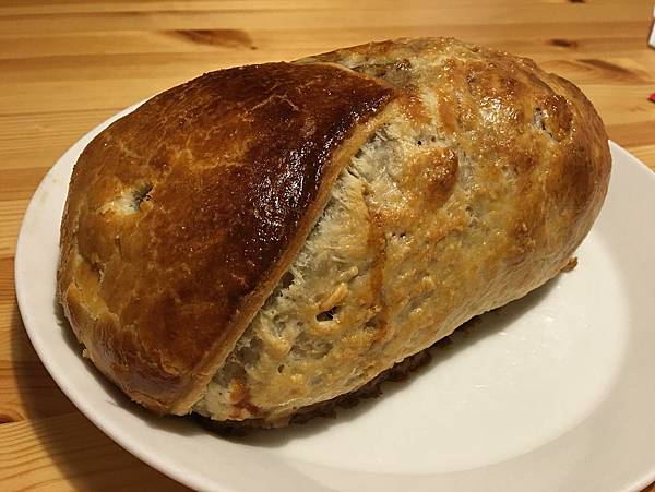 因為婆婆曾經在英國做過au pair (這又是另一個故事了),所以老公也從她那裡聽說威靈頓牛排真的不容易。做完以後當然他也馬上跟公公、婆婆和小姑分享。