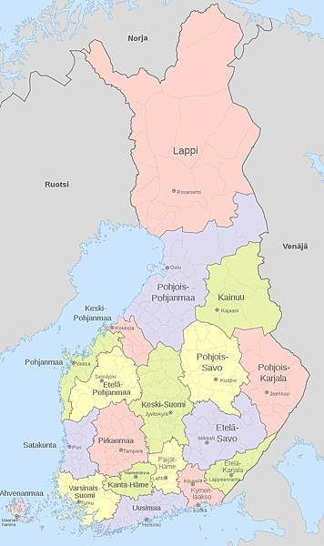 芬蘭境內有19個行政區,最多人在Uusimaa區 (我想大概全芬蘭有四分之一的人口都在那兒吧)