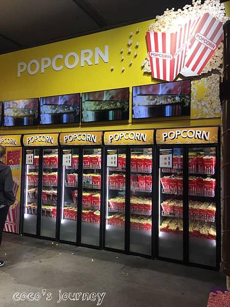 我們先在網路上訂好票,所以一進戲院門只要直接去拿你想要的零食(有糖果、爆米花、玉米片等選項),結帳後拿出手機給查票人員掃QR code就可以進去看電影了。