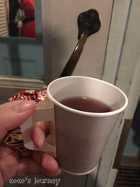 到了那裡發現好多人呀!還沒進門前就有熱紅酒和巧克力驅寒。活動裡老人小孩居多,沒想到還提供免費食物,早知道就餓肚子過去吃芬蘭美食了 😆