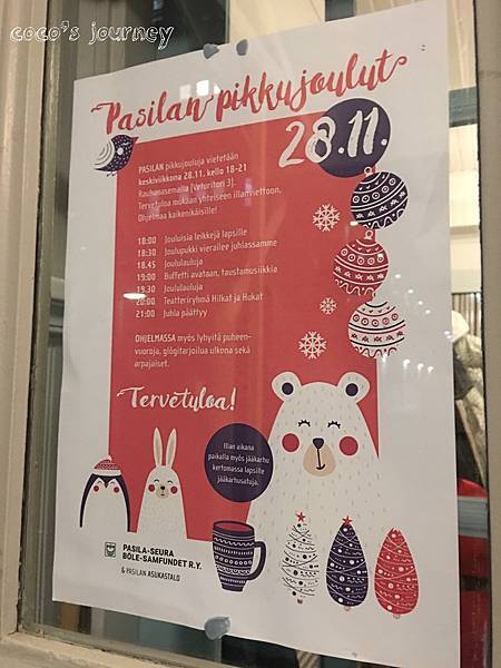 前幾天郵差投信時夾著一張我們這一區辦的pikkujoulu(直翻就是小聖誕),也就是歲末聚餐。我看到廣告單上面說會有聖誕歌還有聖誕老人,就決定一定要去湊熱鬧~