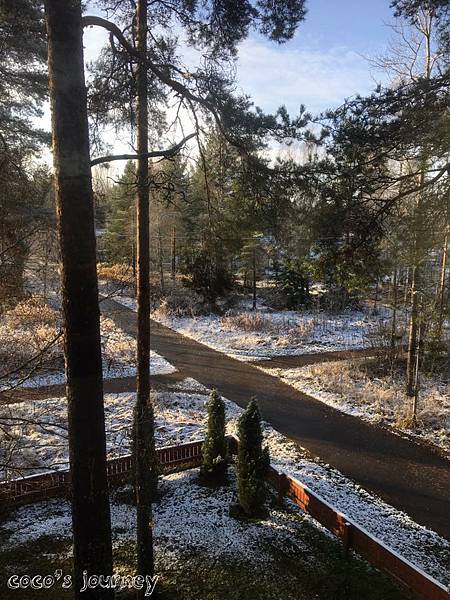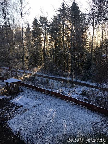 今天早上起床發現外面雪白一片,太陽好大但外面只有1度。 What a beautiful day!