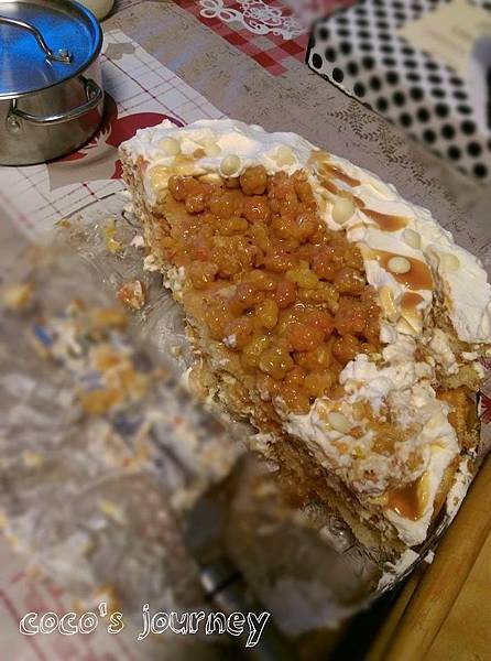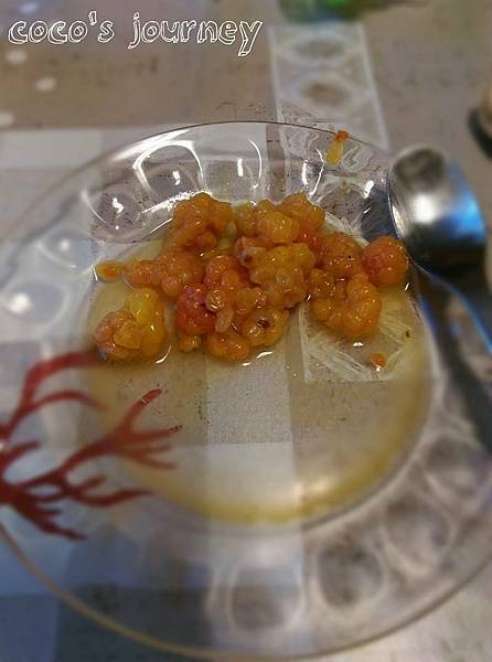 昨天是爸爸生日,媽媽做了雲莓蛋糕。雲莓…吃起來有點酸酸甜甜,配上奶油很好吃