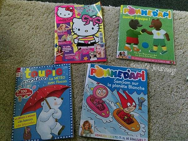 除了一般童書以外,小茱和小堤都各有屬於自己的定期兒童雜誌。pommedapi是姐姐的,toupie是弟弟的~ 最近最新一期的pommedapi剛出來,小茱很開心的要我示範裡面的兒童瑜伽!其實翻了一下裡面的內容,真的是很會抓孩子們的心耶!我也開始喜歡上這種兒童雜誌了!