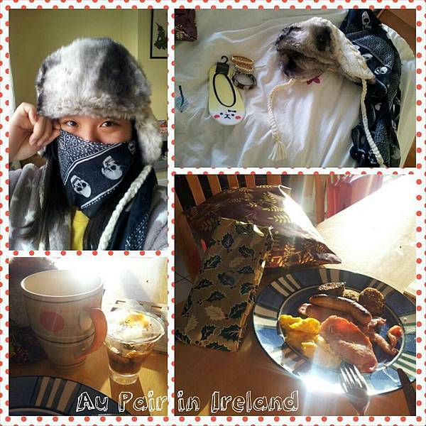 Merry Christmas~~~ (是可以講幾次啦 XD ) 一早起來就有萊恩先生的愛心Irish breakfast,然後禮物就出現了!噢~沒想到我也有禮物!我猜帽子和圍巾是萊恩先生的,襪子和手環是萊恩太太的~都好喜歡喔 🙂 天哪!!真幸福 I got presents from The Ryan's! Happy Merry Christmas!! 😃