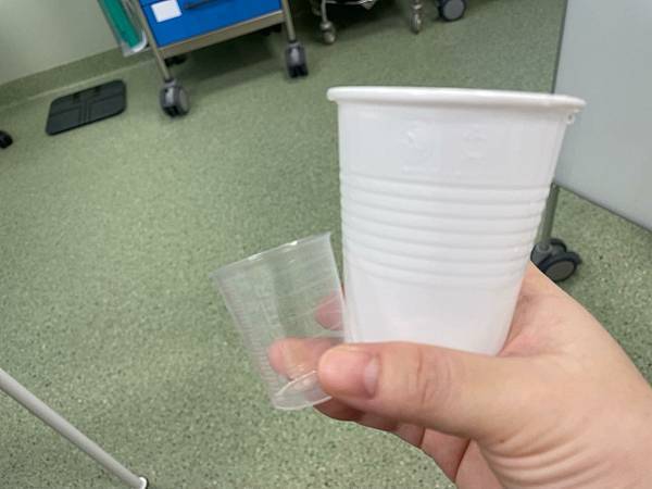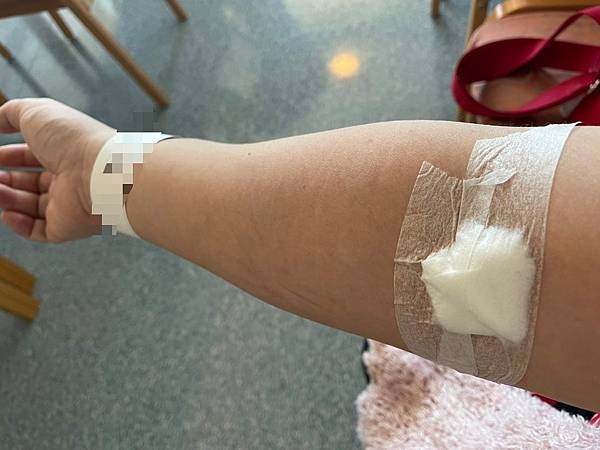 大概早上10:40的時候,我就把那個藥給吞了。後來我們就被安排到雙人病房去稍微休息,醫生說可以走走,也可以休息,看我自己決定。我這之間還去抽了四管血,忘記為什麼要抽了。