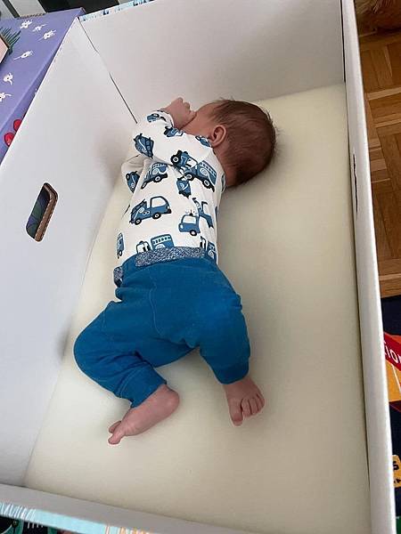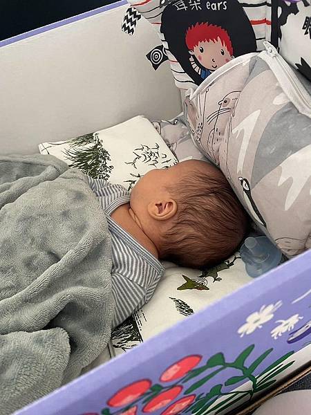 不過我們家也是只有哥哥睡過,我第二胎比較沒有遵照助產士「每三小時就餵一次」的規定,加上自己是親餵,所以都躺在房間大床上躺餵。