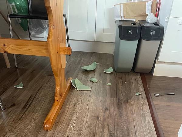 我就在他房間外面處理破掉的盤子,弟弟同時也在聲嘶力竭地哭,但我得先處理好地上的東西,才能走過去把他抱起來。