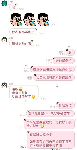 原本我老公要煮飯,我要去把買回家的東西都放好,後來他打開衣服看到慘狀後,還是決定呼喚我來一起處理。