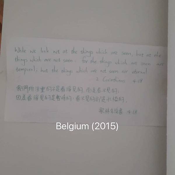 昨天比利時au pair家庭的媽媽忽然傳來一張照片,那是我七年前不知道為什麼寫了一段聖經經文貼在衣櫃裡的(吧?),她整理家裡時偶然發現了。