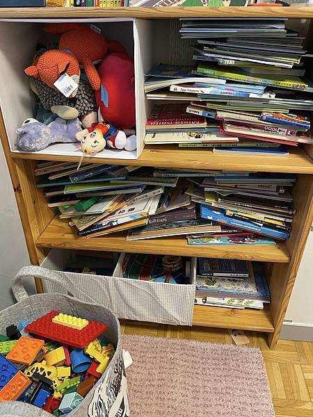 因為上次回台灣扛了一大堆回來,把100kg的行李帶好帶滿,加上我老公的親友也給了我們很多書,所以其實畫面裡的還只是一小部分。
