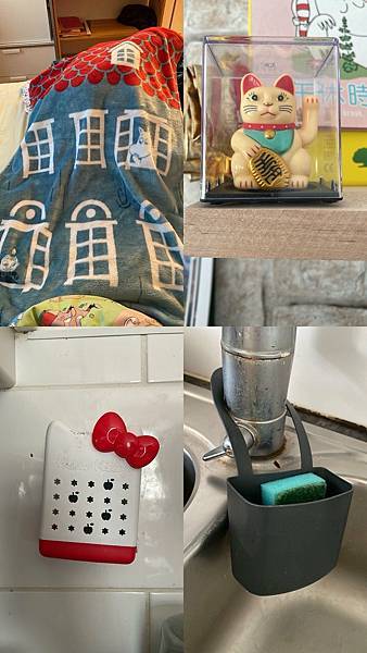 廚房的有 ➡️ 水槽吊掛菜瓜布盒、吸盤式菜瓜布盒、三角飯糰塑形盒、一堆筷子…
